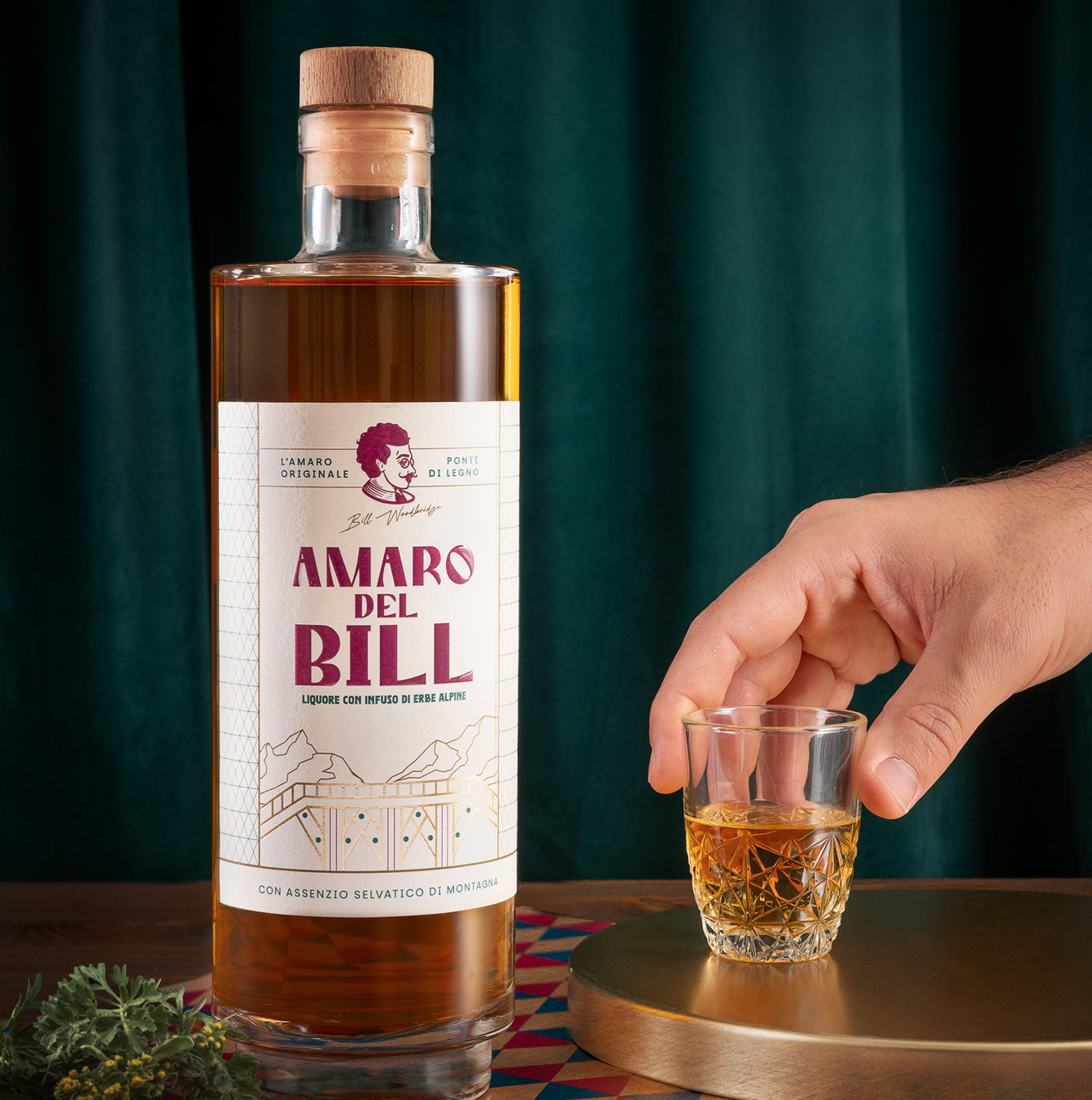 Amaro del Bill è un liquore artigianale ottenuto dall’infusione di foglie e fiori di assenzio selvatico, raccolti sui pendii dell’Adamello nei dintorni di Ponte di Legno, uniti a erbe alpine, radici e agrumi essiccati che gli donano un gusto deciso e travolgente. Prodotto artigianalmente con materie prime 100% naturali, Amaro del Bill è un amaro amaro, dal profumo fresco come l’aria in quota e dal sapore intenso di montagna. Da gustare ghiacciato o con un solo cubetto di ghiaccio, non di più.