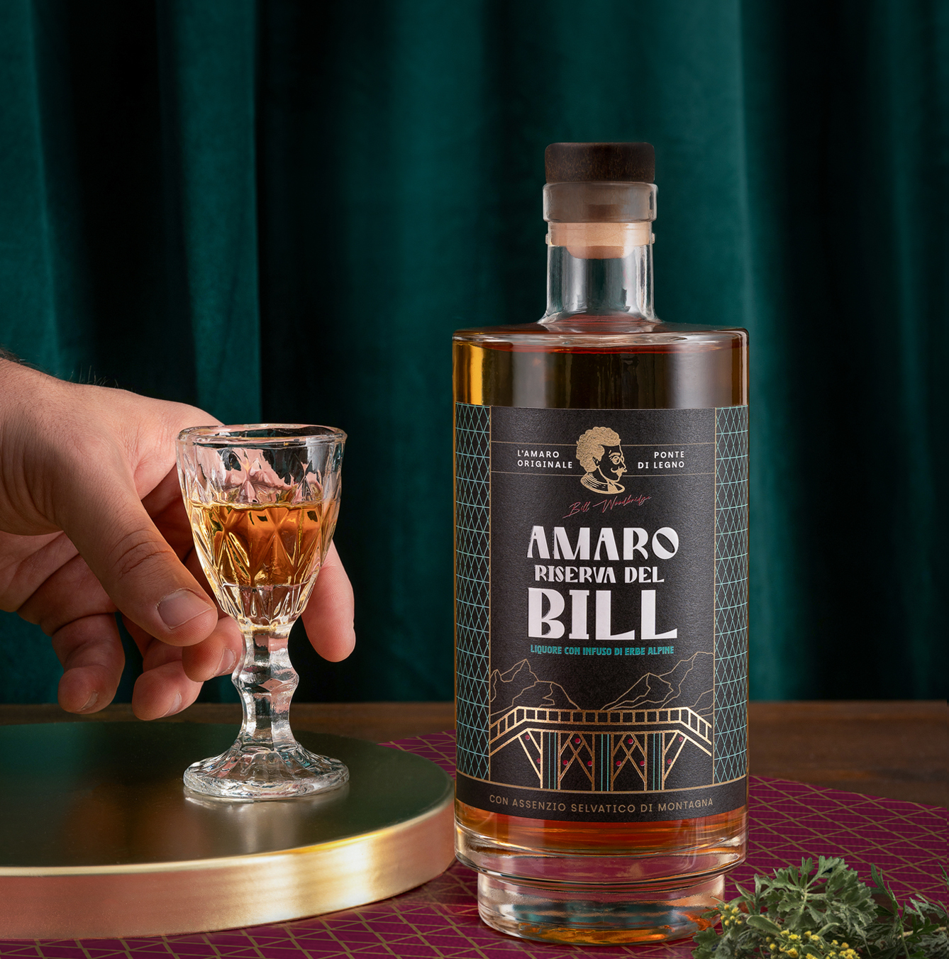 Amaro Riserva del Bill è l'apoteosi dell'amaro: digestivo, forte e amaro, al primo sorso scuote il palato ma poi lascia in bocca un ricordo estremamente piacevole. La sua ricetta presenta quasi esclusivamente assenzio selvatico, selezionato nel momento della fioritura, raccolto sui monti nei dintorni di Ponte di Legno, e lavorato artigianalmente. La macerazione delle erbe con acqua limpida di fonte montana e alcol puro e le successive lavorazioni manuali, insieme a un lungo invecchiamento, donano all'Amaro Riserva del Bill un carattere deciso e inconfondibile.